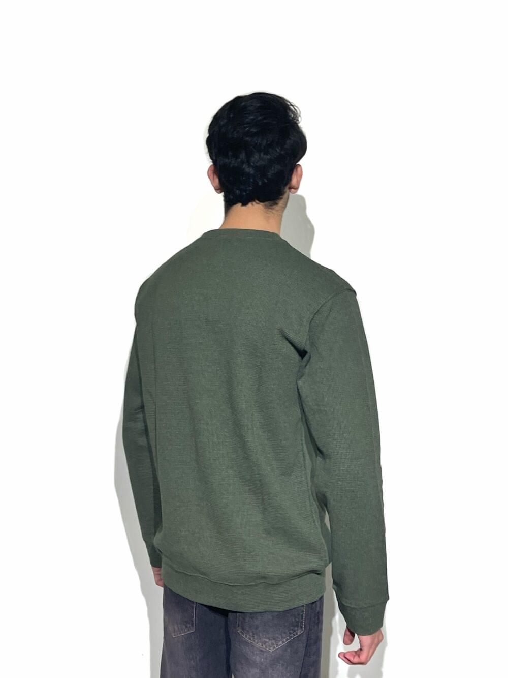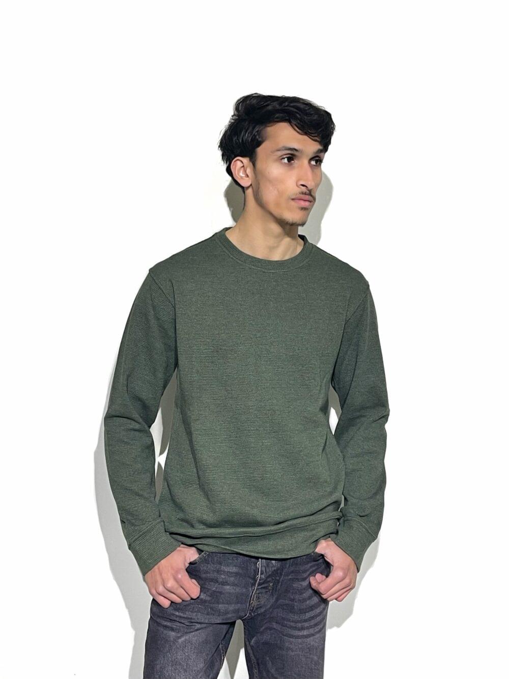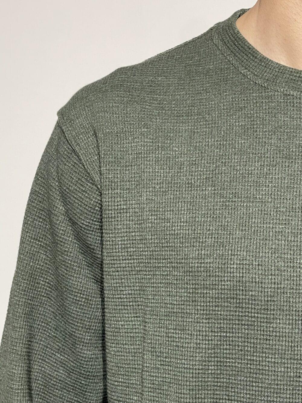 A textured sweatshirt features a unique pattern, offering both comfort and style with a distinct, tactile design.
